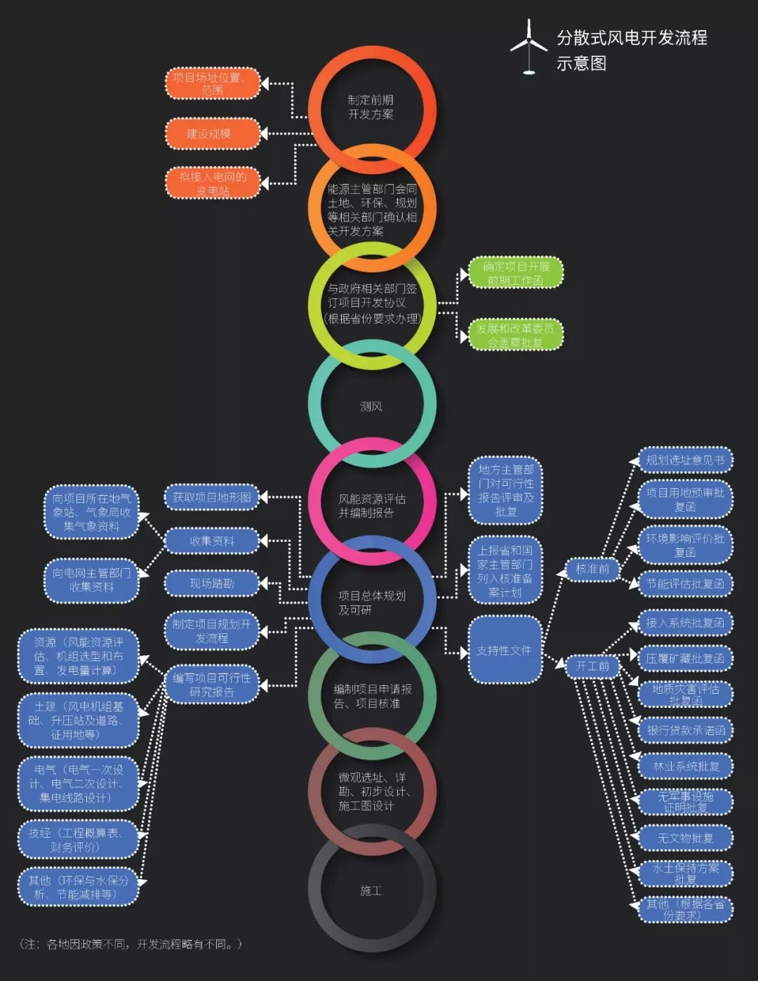 其中,較之前最大的改變是簡(jiǎn)化項(xiàng)目核準(zhǔn)流程,試行項(xiàng)目核準(zhǔn)承諾制。繁瑣的核準(zhǔn)手續(xù)是分散式風(fēng)電發(fā)展的主要阻礙。從事前審批轉(zhuǎn)為事后監(jiān)管,即對(duì)試行項(xiàng)目核準(zhǔn)承諾制的地區(qū),地方能源主管部門(mén)不再審查前置要件,審查方式轉(zhuǎn)變?yōu)槠髽I(yè)提交相關(guān)材料并作出信用承諾,地方能源主管部門(mén)審核通過(guò)后,即對(duì)項(xiàng)目予以核準(zhǔn)。鼓勵(lì)開(kāi)發(fā)企業(yè)將位于同一縣域內(nèi)的多個(gè)電網(wǎng)接入點(diǎn)的風(fēng)電機(jī)組打包統(tǒng)一開(kāi)展前期工作,辦理相關(guān)支持性文件,由政府部門(mén)提供“一站式”的服務(wù)支持。簡(jiǎn)化了核準(zhǔn)流程,縮短時(shí)間,形成了區(qū)別于集中式風(fēng)電開(kāi)發(fā)的新模式。