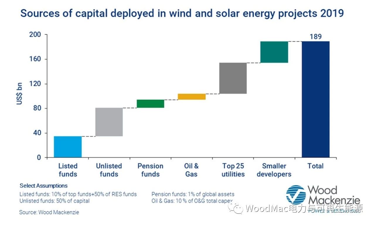 由于風(fēng)電和光伏發(fā)電作為資產(chǎn)類(lèi)別的風(fēng)險(xiǎn)性質(zhì),未上市和上市的基金目前在1,900億美元的支出中占約45%。