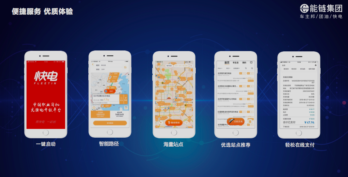 為呼應(yīng)國(guó)家經(jīng)濟(jì)發(fā)展脈搏,順應(yīng)數(shù)字經(jīng)濟(jì)的新動(dòng)能大勢(shì),能鏈集團(tuán)(車主邦/團(tuán)油/快電)圍繞著移動(dòng)互聯(lián)網(wǎng)+大數(shù)據(jù)+云計(jì)算+AloT組成的技術(shù)矩陣,不斷升級(jí)打造自有產(chǎn)品體系,同時(shí)聯(lián)合產(chǎn)業(yè)生態(tài)伙伴,形成以場(chǎng)景為核心的解決方案集群。能鏈集團(tuán)旗下的“快電”,正是誕生于我國(guó)能源轉(zhuǎn)型發(fā)展境況下的優(yōu)質(zhì)產(chǎn)品,其一脈傳承了能鏈集團(tuán)的數(shù)字化開放平臺(tái)的優(yōu)勢(shì),打造了“中國(guó)最大的職業(yè)司機(jī)充電平臺(tái)”。