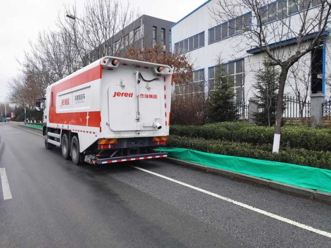 由杰瑞集團(tuán)自主研制的深度清潔車,采用高壓水旋轉(zhuǎn)清掃專利裝置和高負(fù)壓多級(jí)風(fēng)機(jī)真空抽吸系統(tǒng),可以徹底清除道路縫隙沉積的污染物、路面油污、泥土等,從源頭遏制道路揚(yáng)塵污染,有效切斷細(xì)菌、病毒的沉降途徑。