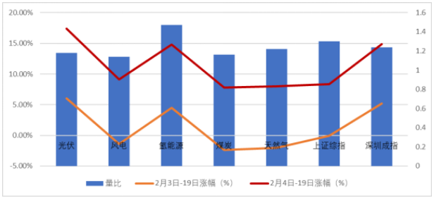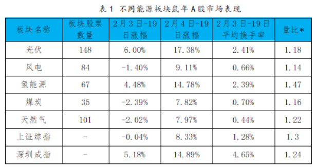 與其它能源相比,光伏近年來成本快速下降,發(fā)展?jié)摿Ω鼮榭春?。光伏板塊在所有能源行業(yè)中漲幅領(lǐng)先,截止2月19日,鼠年板塊整體漲幅達6%,而自2月3日大跌后,累計漲幅更高達17.38%。