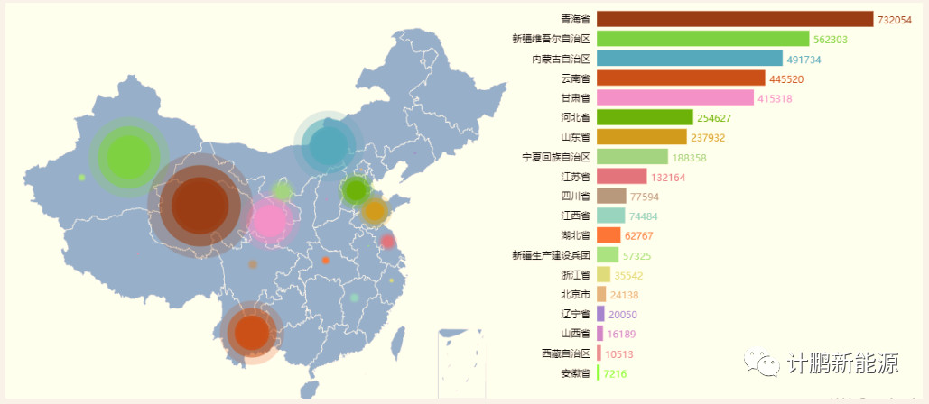 目前光伏累計核發(fā)量3845828個,占據(jù)前三甲的是青海、新疆和內(nèi)蒙古自治區(qū),核發(fā)量分別是732054、562303、491734,占總核發(fā)量的46.44%。