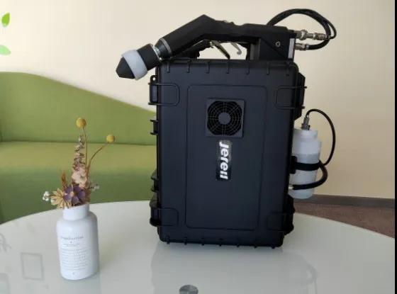 杰瑞華創(chuàng)的靜電噴霧移動消毒站,寬度不足一人身寬,體積配適動車客艙,可靈活地在動車內(nèi)通行。采用鋰電池為動力來源,無線續(xù)航,不受通電線路長度和充電區(qū)域的影響,工作環(huán)境更自由。移動推車式設(shè)計(jì),一人即可開展工作,節(jié)省人力,移動更便捷。