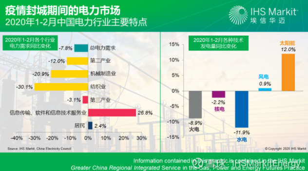 埃信華邁(IHS Markit)通過研究中國電力聯(lián)合會(huì)發(fā)布的數(shù)據(jù)顯示,1-2月份,中國全社會(huì)用電量同比下降7.8%,降幅之大甚至超過了2008-2009年全球金融危機(jī)期間。