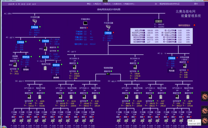 7、具有多級智能能量控制能力,既可自動實現(xiàn)網(wǎng)內(nèi)發(fā)電、用電、儲能之間的能量平衡,也可是按發(fā)電電源、儲能和用電工況等的經(jīng)濟性,實現(xiàn)智能優(yōu)化調(diào)度。在聯(lián)網(wǎng)運行條件下,還可兼有協(xié)助大電網(wǎng)“削峰填谷”、“調(diào)壓調(diào)頻”能力,進一步優(yōu)化供電效益。