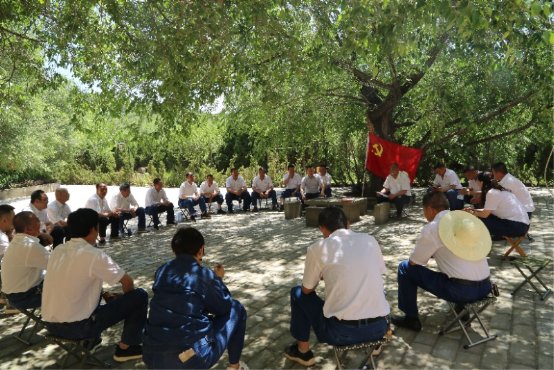 活動(dòng)中,一行人先后來(lái)到陜甘邊區(qū)軍委、蘇維埃政府舊址,參觀舊址窯洞陳列,來(lái)到革命先輩們工作、生活的場(chǎng)景中進(jìn)行體驗(yàn)、感受。黨員同志們或駐足發(fā)問(wèn)或相互討論,氣氛相當(dāng)熱烈。在蘇維埃政府舊址院內(nèi),全體黨員面對(duì)黨旗,重溫入黨誓詞。在體驗(yàn)式教育參觀結(jié)束后,與會(huì)黨員圍坐在蘇維埃政府舊址院內(nèi)的大樹(shù)下,黨員方勇同志向大家分享了爺爺方世祿老紅軍的南梁故事,劉汀同志講述革命先驅(qū)劉志丹的英勇故事,激發(fā)了大家對(duì)那段崢嶸歲月里革命者的無(wú)限崇敬。接著,黨員楊虎誠(chéng)誦讀了《習(xí)近平七年知青歲月》部分章節(jié),積極分子董旭軍誦讀了《鄧穎超自述》部分章節(jié)。最后,大家合唱起改編自華池民歌《推炒面》的《軍民大生產(chǎn)》,唱起了讓無(wú)數(shù)人淚目的《我和我的祖國(guó)》,在嘹亮的歌聲中此次活動(dòng)圓滿結(jié)束。
