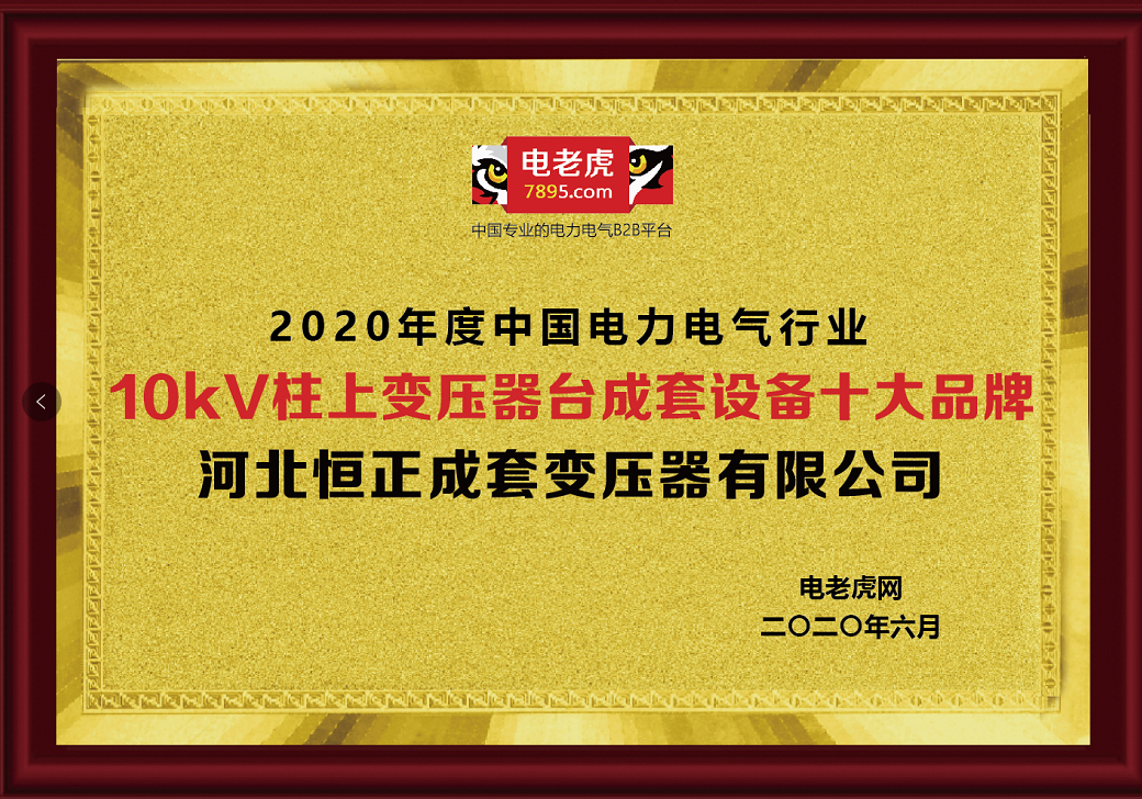 由電老虎網(wǎng)主辦的2020年中國電力電氣“10kV柱上變壓器臺(tái)成套設(shè)備十大品牌”評(píng)選結(jié)果已于6月22日正式揭曉。經(jīng)過半個(gè)多月的激烈角逐,超過百萬人次參與,河北恒正成套變壓器有限公司憑借超強(qiáng)的綜合實(shí)力、市場(chǎng)規(guī)模以及品牌影響力等榮獲2020年度中國電力電氣“10kV柱上變壓器臺(tái)成套設(shè)備十大品牌”。