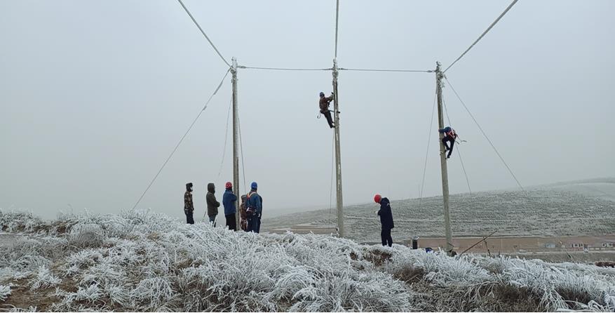 災情就是命令!國網(wǎng)慶陽市供電公司高度重視,立即啟動雨雪冰凍災害處置Ⅳ級應急預案,組織搶修維護人員對高低壓線路、用電設備進行全方位、無死角特巡,確保雪后供電設備能夠搶修及時。慶陽南梁共產(chǎn)黨員服務隊主動出擊,克服道路積雪行走困難、桿塔覆冰攀登濕滑、自然條件惡劣等困難,連夜展開搶修工作。