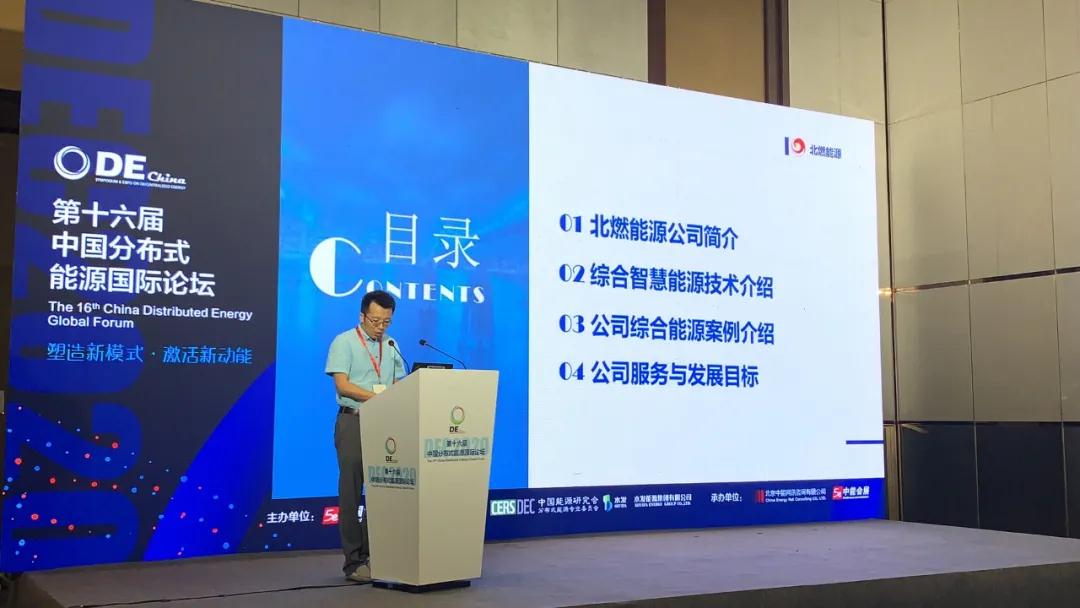 于此同時,北京燃?xì)饽茉窗l(fā)展有限公司運營總監(jiān)魏巍在會上作了題為“‘多能協(xié)同,智能耦合’綜合智慧能源技術(shù)與案例交流”的主旨演講。