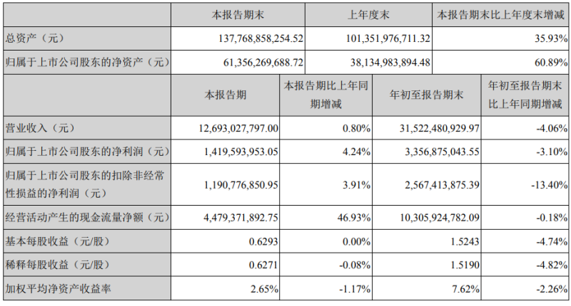 10月27日,寧德時(shí)代發(fā)布2020年第三季度業(yè)績(jī)報(bào)告。該季度營(yíng)收126.93億元,同比增長(zhǎng)0.8%;凈利潤(rùn)14.20億元,同比增長(zhǎng)4.24%;今年前三季度,寧德時(shí)代營(yíng)收315.22億元,同比下降4.06%;凈利潤(rùn)33.57億元,同比下降3.10%。