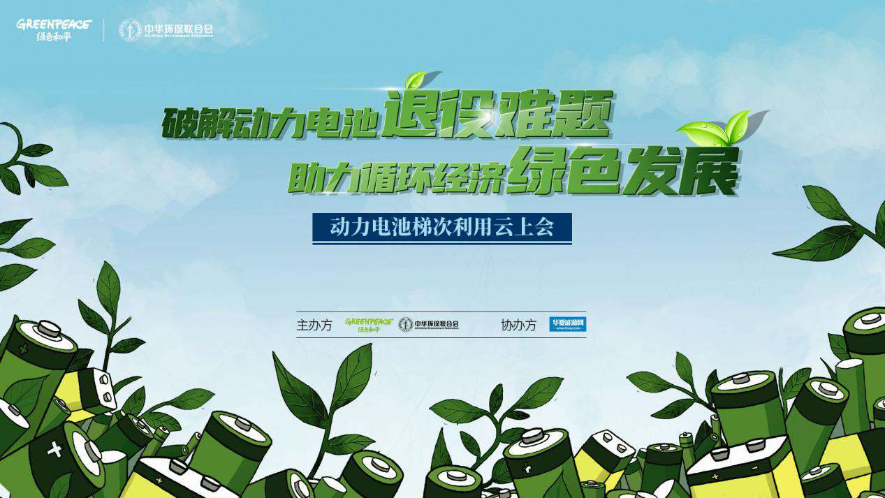 2020年10月30日,由國(guó)際環(huán)保機(jī)構(gòu)綠色和平與中國(guó)環(huán)保聯(lián)合會(huì)聯(lián)合主辦,華夏能源網(wǎng)承辦的“破解動(dòng)力電池退役難題:助力循環(huán)經(jīng)濟(jì)綠色發(fā)展”動(dòng)力電池梯次利用研討會(huì),以線上直播的形式成功舉辦。