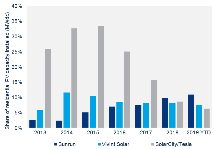 圖2:2013-2019年美國家庭光伏市場份額變化