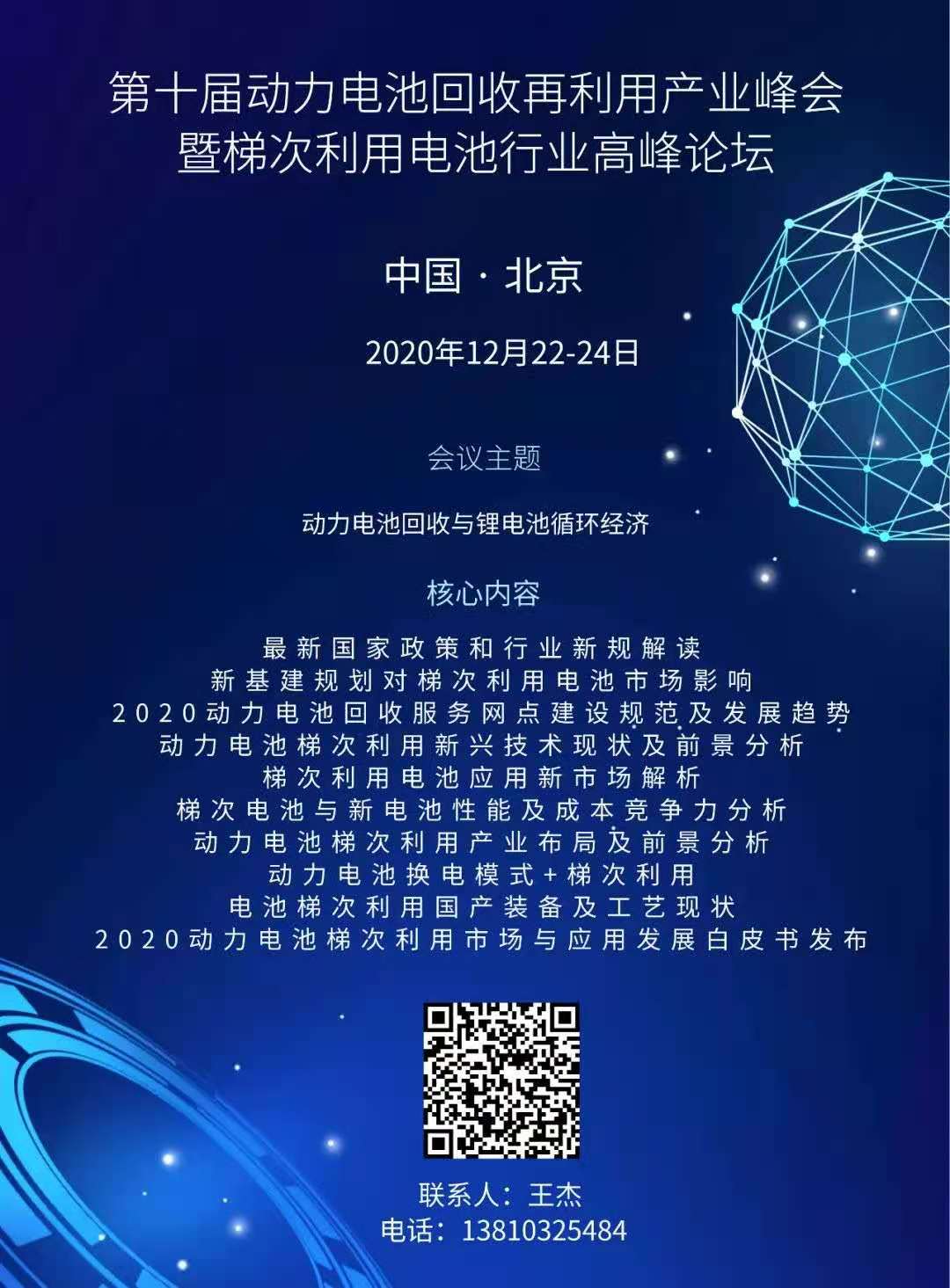 為了促進電池回收行業(yè)發(fā)展,引導廢舊動力電池回收網(wǎng)絡體系建立,探討新基建規(guī)劃帶來的新市場機遇,提高動力電池全生命周期價值,探索新型商業(yè)模式及盈利點。由中國電池聯(lián)盟、中國綠色供應鏈聯(lián)盟電池專委會、中國電子節(jié)能技術(shù)協(xié)會電池專委會聯(lián)合舉辦的“第十屆動力電池回收再利用產(chǎn)業(yè)峰會暨梯次利用電池市場發(fā)展論壇”,即將在北京召開。
