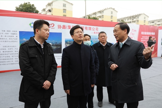 協(xié)鑫能科總經(jīng)理費(fèi)智向襄陽(yáng)市委副書(shū)記、市長(zhǎng)郄英才作項(xiàng)目介紹