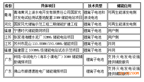 國(guó)家能源局公示的首批科技創(chuàng)新(儲(chǔ)能)試點(diǎn)示范項(xiàng)目清單