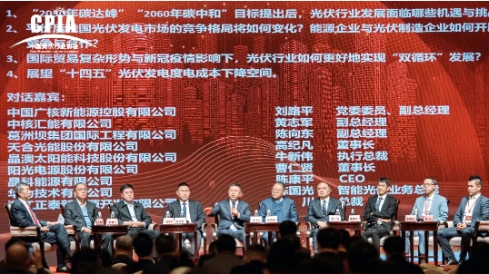 在隨后的光伏領(lǐng)袖/專家對(duì)話中,高紀(jì)凡與行業(yè)專家們就光伏行業(yè)發(fā)展、企業(yè)競(jìng)爭(zhēng)與合作、度電成本下降空間等問題展開了深入討論。