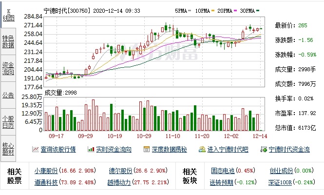 寧德時(shí)代融資融券信息顯示,2020年12月11日融資凈償還1795萬元;融資余額30.56億元,較前一日下降0.58%。