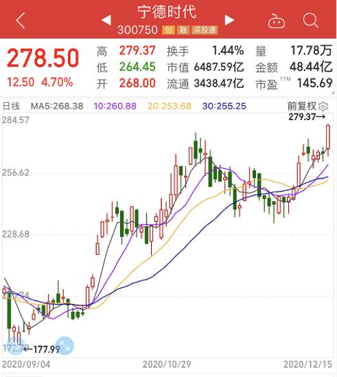 受此消息刺激,昨日寧德時(shí)代大漲4.7%,股價(jià)創(chuàng)出歷史新高,收盤市值達(dá)到6488億元,超過海天味業(yè),排名A股上市公司A股市值榜第十位。