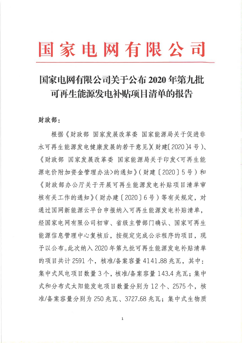 從國家電網(wǎng)新能源云獲悉:12月15日,國家電網(wǎng)發(fā)布關(guān)于公布2020年第九批可再生能源發(fā)電補貼項目清單的公告。