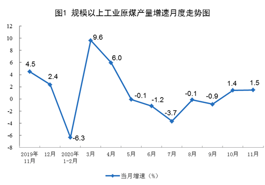 11月份,規(guī)模以上工業(yè)原煤、原油、天然氣生產(chǎn)保持平穩(wěn)增長,電力生產(chǎn)明顯加快。