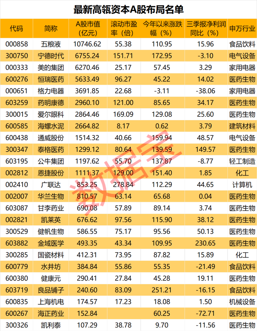 高瓴資本A股布局全名單出爐考慮到高瓴資本的投資動(dòng)向已經(jīng)成為不少投資者的參考標(biāo)本,證券時(shí)報(bào)·梳理出最新高瓴資本在A股市場(chǎng)上布局的股票全名單,合計(jì)25股。高瓴資本所持股票主要分布在醫(yī)藥生物、消費(fèi)、新能源、電氣設(shè)備和家用電器等板塊。