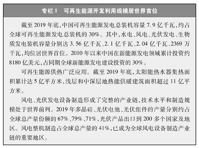 中國堅定不移推進(jìn)能源革命,能源生產(chǎn)和利用方式發(fā)生重大變革,能源發(fā)展取得歷史性成就。能源生產(chǎn)和消費結(jié)構(gòu)不斷優(yōu)化,能源利用效率顯著提高,生產(chǎn)生活用能條件明顯改善,能源安全保障能力持續(xù)增強,為服務(wù)經(jīng)濟高質(zhì)量發(fā)展、打贏脫貧攻堅戰(zhàn)和全面建成小康社會提供了重要支撐。