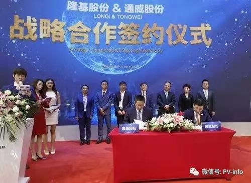 在2020年的不久之前,9月25日,通威股份發(fā)布公告,正式宣布與隆基的戰(zhàn)略合作進(jìn)展。同時(shí),隆基股份也發(fā)布《隆基股份關(guān)于與通威股份有限公司簽訂戰(zhàn)略合作協(xié)議的進(jìn)展公告》。
