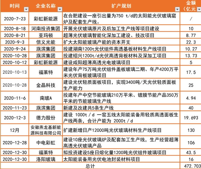 近日,中電彩虹、福萊特、洛陽玻璃三家玻璃巨頭相繼拋出了自己的擴(kuò)產(chǎn)計(jì)劃。短短四天時(shí)間,三家巨頭超過165億元的資本注入光伏玻璃產(chǎn)能之上。