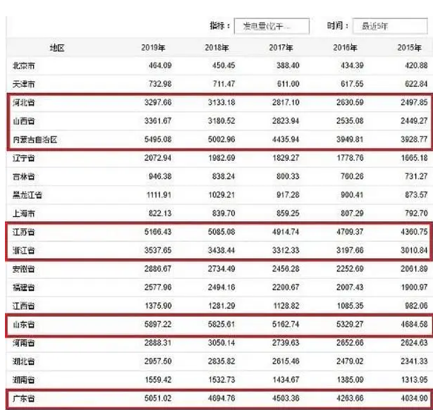 2019年,山東省的發(fā)電量高達5897 .22億千瓦時。發(fā)電量排名前四的省份是山東、內(nèi)蒙古、江蘇、廣東,都超過了5000億千瓦時。除了內(nèi)蒙古這個能源大省外 ,其余都是中國經(jīng)濟排名前三省份。