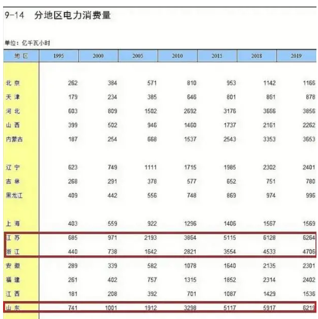 根據(jù)《中國統(tǒng)計年鑒2020》》的數(shù)據(jù),用電量排名前四省份廣東、江蘇、山東、浙江,恰與他們在國內(nèi)的經(jīng)濟地位相一致。
