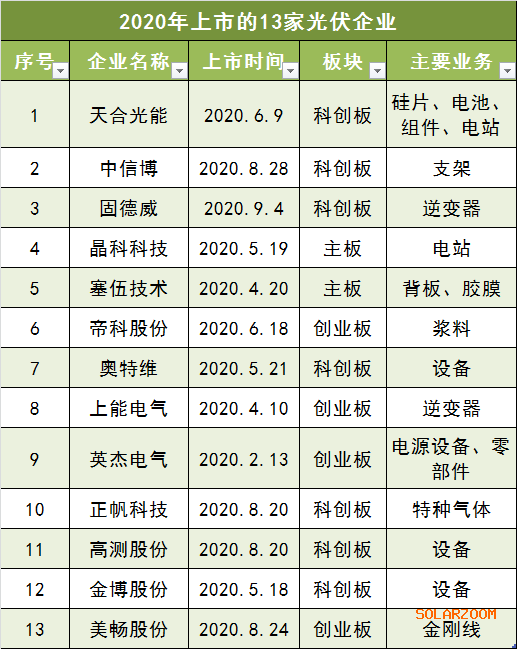 2020年上市的13家光伏企業(yè)