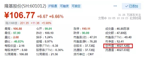 隆基的總市值突破4000億元!