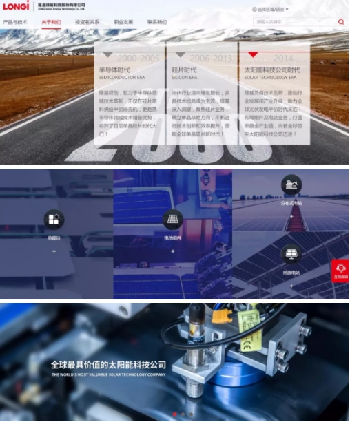 成立于2000年的隆基綠能科技股份有限公司(簡稱“隆基股份”),是全球最具價值的太陽能科技公司。隆基股份正走在—條從產(chǎn)品創(chuàng)新改變行業(yè)到技術創(chuàng)新改變世界能源格局的創(chuàng)變之路上。從光伏材料、光伏發(fā)電設備到太陽能電站系統(tǒng),為光伏發(fā)電事業(yè)提供全方位的服務。
