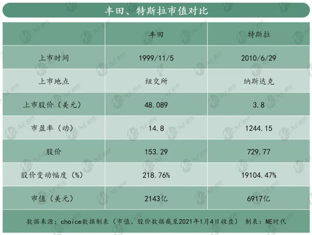 特斯拉上市不到10年,股價(jià)翻了近191倍,市值達(dá)6917億美元,遠(yuǎn)超上市逾20年的豐田。
