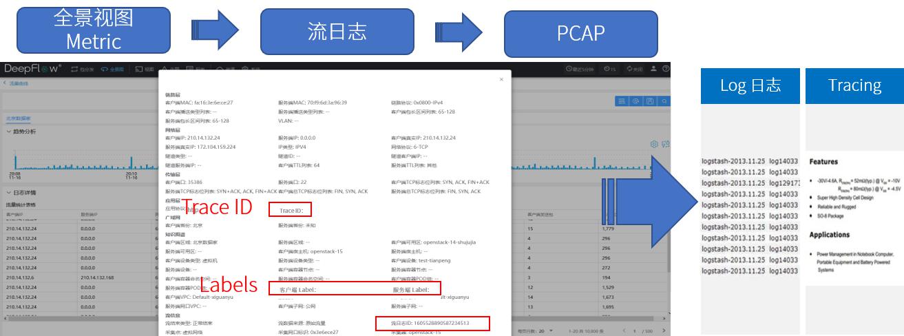 在目前階段,云杉看到客戶處容器環(huán)境發(fā)展迅猛,云建設(shè)思路更清晰,也更有規(guī)劃。同時(shí)也在體系化地考慮監(jiān)控保障側(cè)的建設(shè),將應(yīng)用、網(wǎng)絡(luò)及基礎(chǔ)設(shè)施的Metric、Log、Tracing統(tǒng)一地加以規(guī)劃整合。此時(shí)客戶需求更多地面向業(yè)務(wù)側(cè)、更注重隨云擴(kuò)展的架構(gòu)實(shí)現(xiàn)、以及在此基礎(chǔ)上提供高性能數(shù)據(jù)服務(wù)的能力。比較典型的一個(gè)方案就是支撐微服務(wù)平臺的監(jiān)控中心建設(shè),通過DeepFlow®各功能展現(xiàn)服務(wù)依賴關(guān)系、訪問指標(biāo)、網(wǎng)絡(luò)性能等,基于網(wǎng)絡(luò)流日志獲取業(yè)務(wù)Trace ID、容器Labels等鍵值,關(guān)聯(lián)Log平臺和Tracing框架,完善分布式應(yīng)用系統(tǒng)的可觀測性。