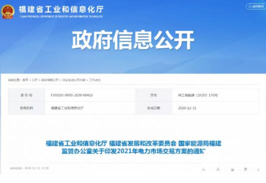 福建省工業(yè)和信息化廳 福建省發(fā)展和改革委員會(huì) 國(guó)家能源局福建監(jiān)管辦公室關(guān)于印發(fā)2021年電力市場(chǎng)交易方案的通知