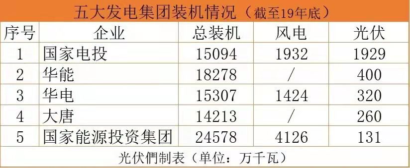 與其他發(fā)電集團(tuán)不同的是,在可再生能源領(lǐng)域的布局中,國家能源集團(tuán)還是全球最大的風(fēng)電投資商,并且一度暫停光伏投資數(shù)年。截至2019年底,該集團(tuán)持有超過40GW的風(fēng)電裝機(jī),與之形成鮮明對比的是,光伏伏裝機(jī)卻位居五大發(fā)電集團(tuán)最后一位,僅為1.31GW。盡管在今年的光伏項(xiàng)目資源競爭中,也多次出現(xiàn)了國家能源集團(tuán)的身影,但從公開的項(xiàng)目信息來看,與大唐、華能等同樣光伏體量較小的發(fā)電集團(tuán)相比,國家能源集團(tuán)在光伏方面的投資力度仍略遜一籌。