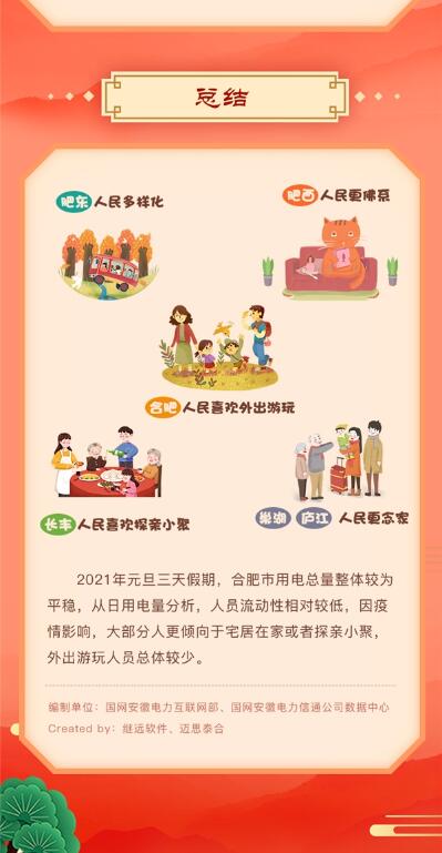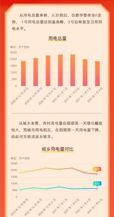 又是一年新年到。元旦假期,正是用電高峰期,國網(wǎng)安徽省電力公司也在時刻關(guān)注居民生活動態(tài)以及用電情況。國網(wǎng)安徽省電力基于合肥居民元旦期間居民每日用電總量、合肥各地區(qū)用電量、居民元旦出行情況等多個維度,通過電力的視角深入且生動的刻畫了合肥居民的用戶行為畫像。