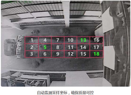通過攝像頭的實時畫面,基于深度學習物體檢測車輛,捕捉貨車車廂上頂蓋平面,用線條等分,繪制18個子采樣區(qū)域,并對子區(qū)域進行編號,直觀展示采樣分布。