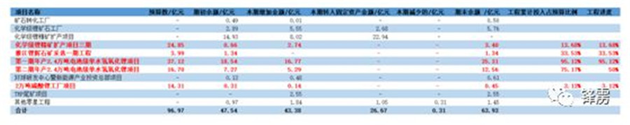 如下圖所示,據(jù)天齊鋰業(yè)2019年年報(bào)披露,諸如化學(xué)級(jí)鋰精礦擴(kuò)產(chǎn)項(xiàng)目三期、2萬(wàn)噸碳酸鋰工廠(chǎng)項(xiàng)目、雅江鋰輝石礦采選一期、2.4萬(wàn)噸電池級(jí)單水氫氧化鋰項(xiàng)目1、2期等均未完工,按照所披露數(shù)據(jù)粗略計(jì)算尚需投入42.11億元。