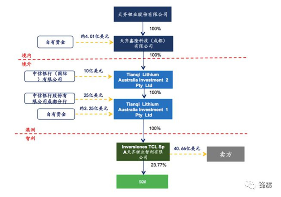 據(jù)公告顯示,收購(gòu)SQM時(shí),天齊鋰業(yè)獲得23.77%的股權(quán),需要支付258.93億元的交易對(duì)價(jià),而截至2018年3月31日,天齊鋰業(yè)合并報(bào)表中貨幣資金及應(yīng)收賬款和應(yīng)收票據(jù)的約合計(jì)65.86億元,僅為支付對(duì)價(jià)的25.43%,遠(yuǎn)不足以支付交易對(duì)價(jià),最終背負(fù)了35億美元的債務(wù)。