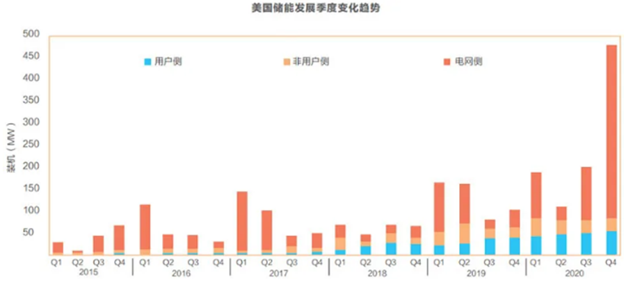 在回答這個(gè)問(wèn)題之前,我們先看一則新聞。根據(jù)美國(guó)儲(chǔ)能協(xié)會(huì)(ESA)和伍德麥肯錫咨詢公司聯(lián)合發(fā)布的報(bào)告,美國(guó)儲(chǔ)能市場(chǎng)在2020年第三季度裝機(jī)476MW/764MWH,比之前的單季度裝機(jī)記錄——也就是2020年的第二季度——增長(zhǎng)了240%。