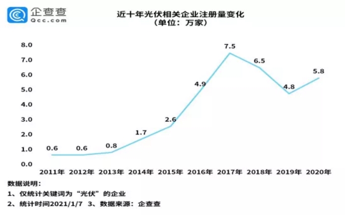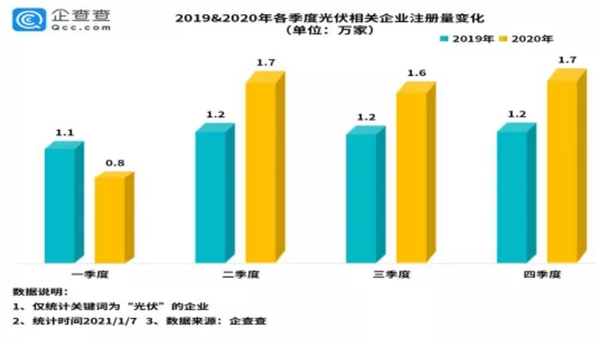 隨著“十四五”的到來,新能源行業(yè)將迎來新來的局面,在利好頻出的情況下,新注冊的光伏相關(guān)企業(yè)數(shù)量能否在2020年的基礎(chǔ)上繼續(xù)攀升需要慢慢等待。