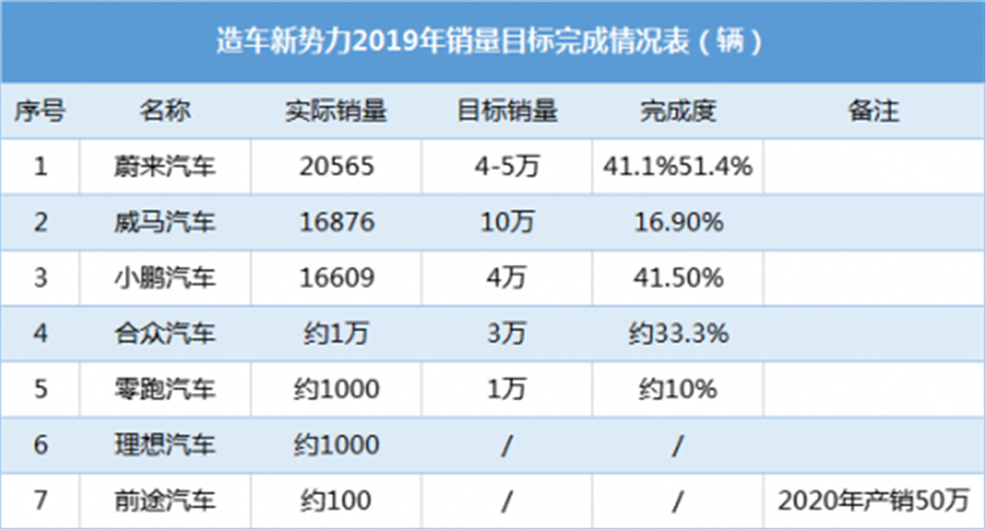 2018年,威馬完成交付3844輛,距離沈暉的第一個(gè)小目標(biāo)——10000輛,差距仍然很大。威馬給自己的2019年的“小目標(biāo)”是10萬輛,最終,威馬只交付了16876輛,完成率16%。