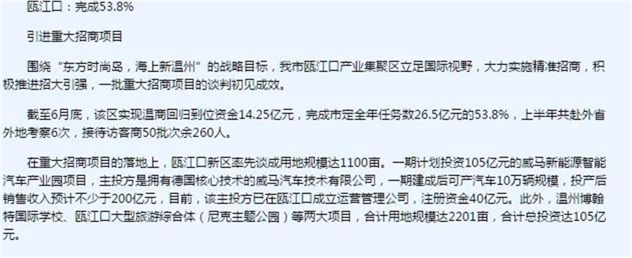可以說溫州為了威馬,給地、給房、給錢。