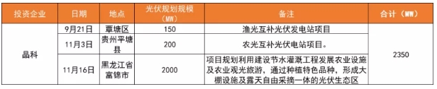 根據(jù)半年報(bào)顯示,2020年上半年,晶科科技已儲(chǔ)備待建電站規(guī)模約1.409GW,為持續(xù)發(fā)展提供有力支撐。據(jù)光伏們不完全統(tǒng)計(jì),2020年下半年,晶科已于廣西、貴州、黑龍江等地簽署超2GW規(guī)模光伏項(xiàng)目,涉及漁光互補(bǔ)、農(nóng)光互補(bǔ)等多種形式。此外,晶科科技于2020年7月、12月分別與全球領(lǐng)先石油和天然氣企業(yè)bp、京能國(guó)際簽署合作協(xié)議,就國(guó)內(nèi)光伏發(fā)電項(xiàng)目開發(fā)與建設(shè)等多方面展開戰(zhàn)略合作。