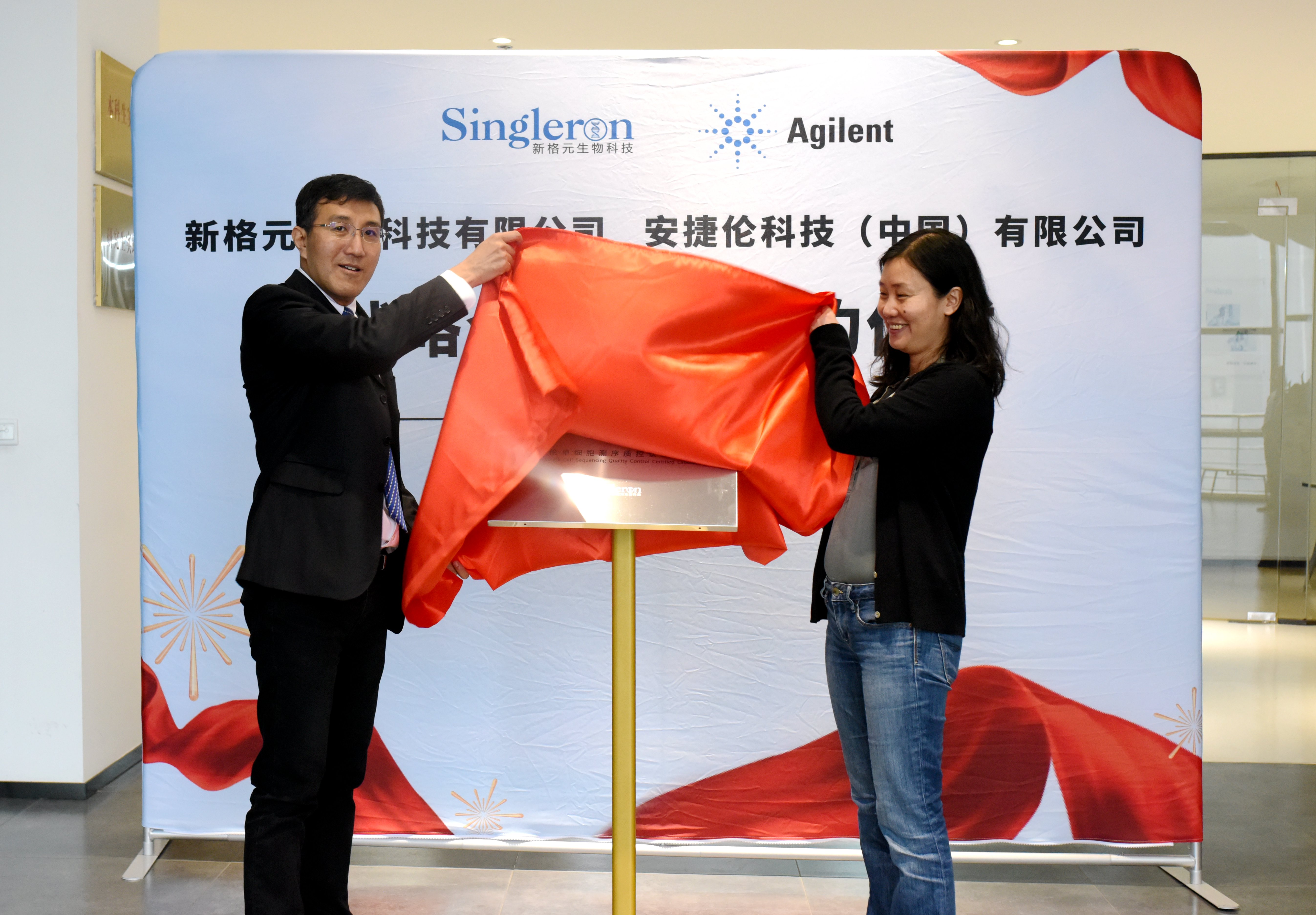 雙方領(lǐng)導(dǎo)為《安捷倫單細(xì)胞測(cè)序質(zhì)控認(rèn)證實(shí)驗(yàn)室》揭牌