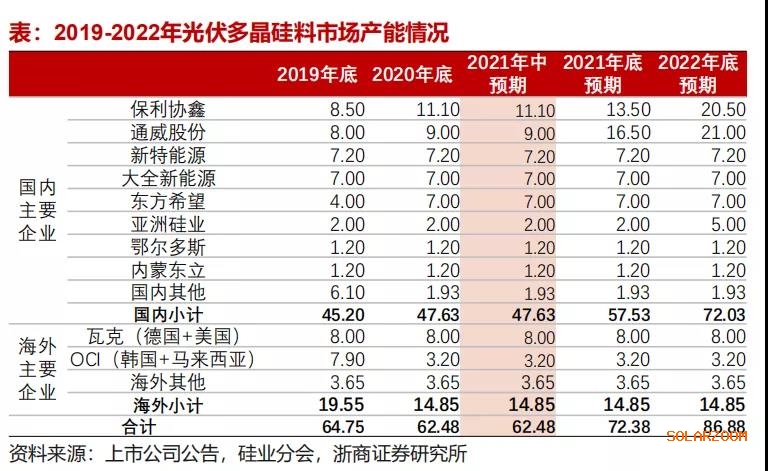 在硅料領(lǐng)域,通威產(chǎn)能在2021年底將達(dá)到16.5萬噸,將反超硅料老大——協(xié)鑫。