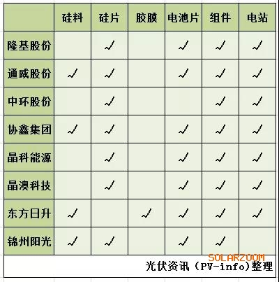 八家光伏企業(yè)所涉及的產(chǎn)業(yè)鏈如下: