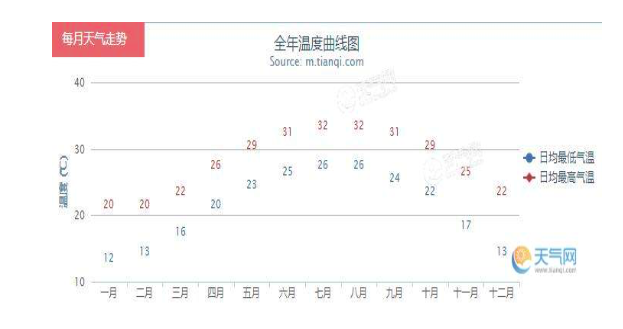 圖注:深圳全年溫度曲線圖,冬季氣溫最低氣溫13--22度之間